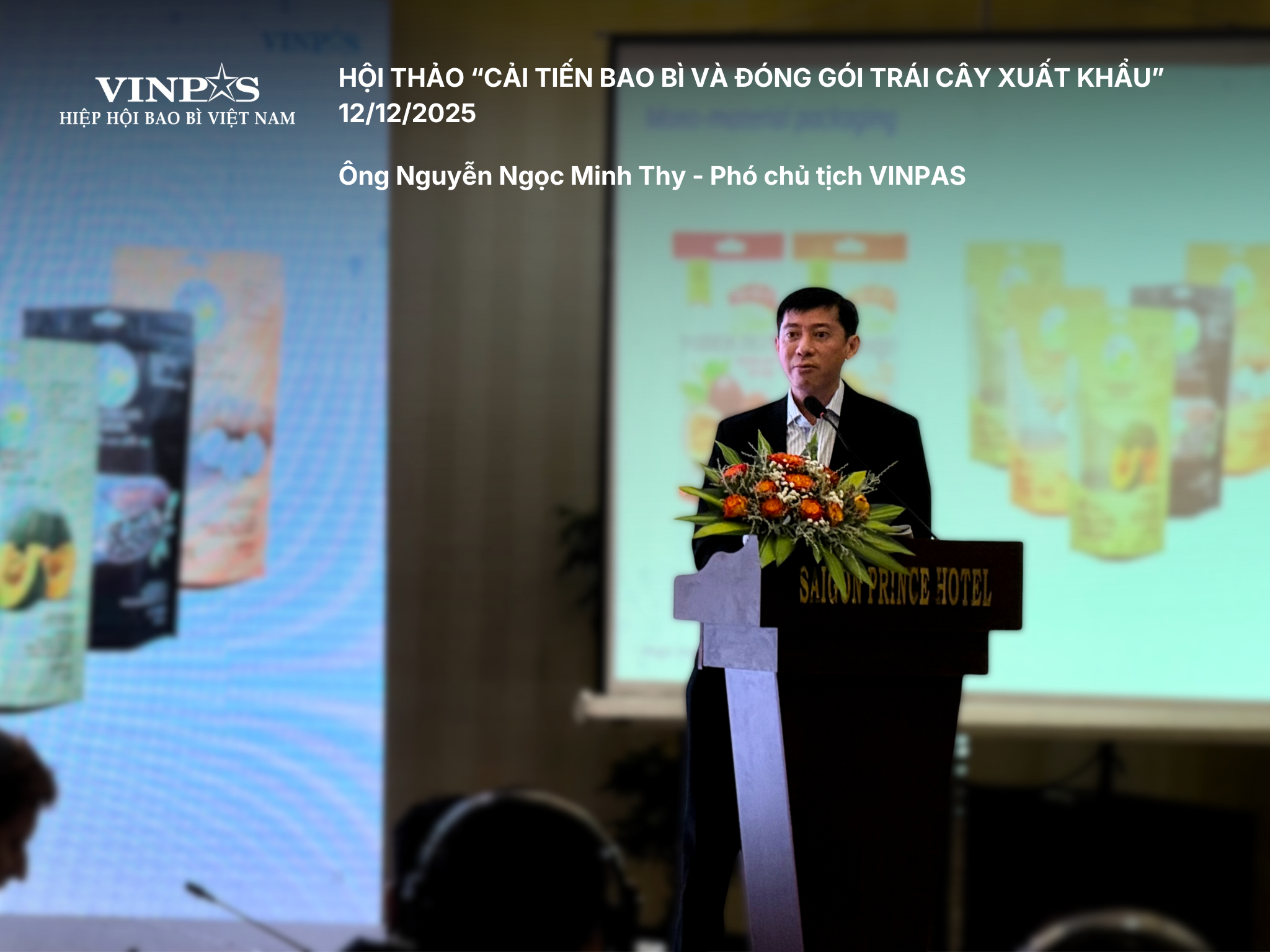 Tại Hội thảo Cải tiến bao bì và đóng gói trái cây xuất khẩu, do Viện Cơ điện Nông nghiệp & CN Sau thu hoạch phối hợp cùng UNIDO/GQSP Việt Nam tổ chức sáng 12/12, ông Nguyễn Ngọc Minh Thy - Phó Chủ tịch Vinpas - đã trình bày và thảo luận về hiện trạng ngành bao bì Việt Nam và các giải pháp nâng cao chuỗi giá trị nông sản xuất khẩu.